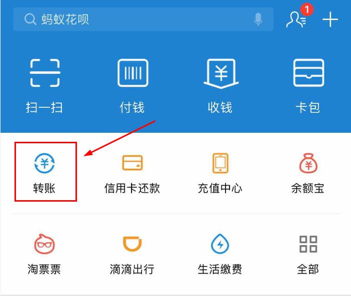第一步:打开您的支付宝客户端,点击转账